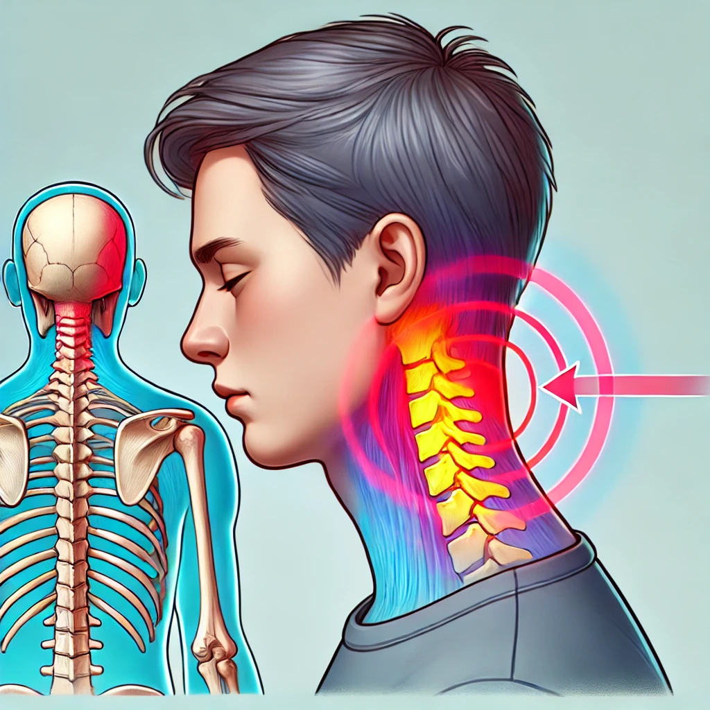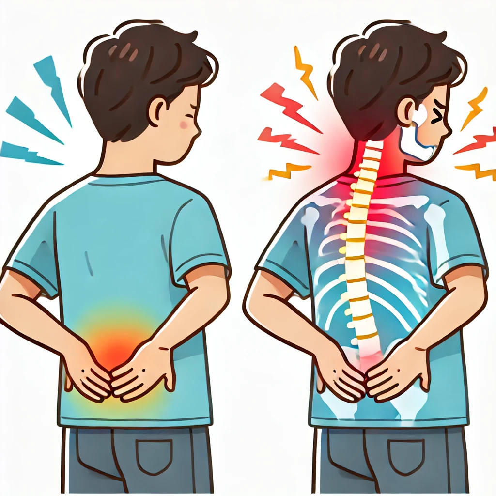 ムチウチは、骨そのものに異常があるわけではなく、骨の周りの筋肉や神経を痛めていることが原因です。