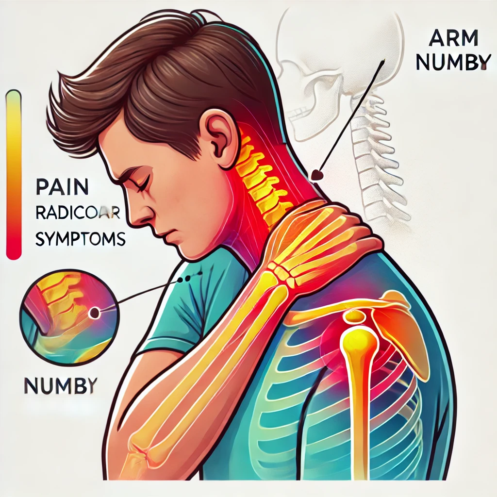 首の周辺にとおっている神経が圧迫されておこるムチウチです。首に痛みを感じる方が多いですが、頭痛を引き起こす場合もあります。さらに、痛いと感じるだけではなく、「腕がしびれる」ということもあります。