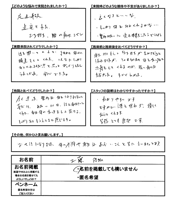 「自分の症状にあわせた施術できちんと最後までケアしきってください!」